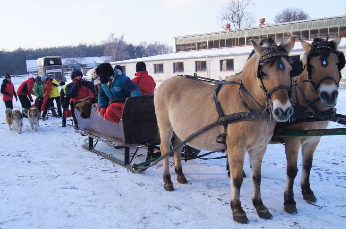 można wybrać się na wspólną wycieczkę pieszą lub kulig. Choć dawny kulig różnił się bardzo od dzisiejszych wyobrażeń o tej formie zimowej rekreacji, mimo to tradycja kuligu przetrwała. Pozostając w zgodzie z tradycją, oraz aby w długie zimowe wieczory nie popaść w niedźwiedzie lenistwo, w dniu 25 stycznia, Sigmowcy z rodzinami i sympatykami w liczbie 25 osób, zawitali do Stadniny Koni Fiord w Młodzikowie.
